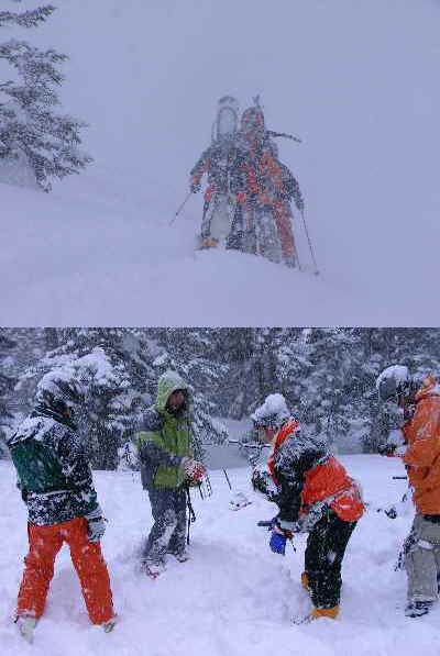 その代わり、栂の森で元村氏にビーコンの使い方や雪中埋没体験をさせて